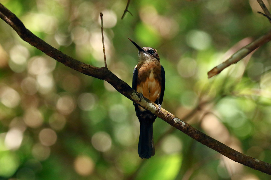 Today we may choose to have a relaxed morning, after our adventures of the previous days, perhaps with some relaxed birding around the gardens of our guest house. Later on we transfer to our next lodge. After settling in we enjoy some relaxed birding around in the lodge's small private reserve and this evening watch as endemic Brumback's night monkeys leave their roosts.