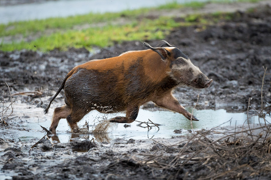 Herds of the endangered and rarely seen African forest elephant and russet-coloured forest buffalo are common. While beautifully marked sitatunga and bongo antelopes, sounders of colourful red river hogs, vast flocks of green pigeons, African grey parrots, and perhaps even a noisy group of chimpanzees may all be observed.