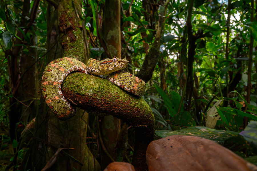 For the next three days, we explore the grounds of our lodge and surrounding reserves in search of rewarding photographic opportunities. A particular focus is the region's amphibians, with poison dart and tree frogs a plenty, in addition to a fascinating array of reptiles. One of the locations we may visit during our time in Sarapiqui is also an excellent spot to catch sight of scarlet and great green macaws. During the evenings, we also enjoy night walks, which should provide some good macro opportunities.