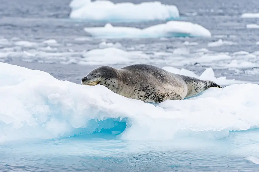 Venturing further south, encounter a diversity of wildlife that thrives in these icy extremes. Orcas slice through the water in pursuit of prey, while minke and fin whales surface among the floes. Leopard, Weddell and crabeater seals haul out on the ice, while Adélie, chinstrap and gentoo penguins gather in bustling colonies. You may even spot the mighty blue whale this far south, a rare and humbling sight in a landscape ruled by ice.