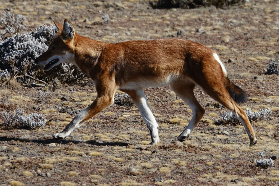 Among our many target species here are Ethiopian wolf, Starck’s hare, Menelik’s bushbuck, mountain nyala, giant root rat, Bale Mountain monkey, blue-winged goose, spot-breasted lapwing, Rouget’s rail and wattled crane.