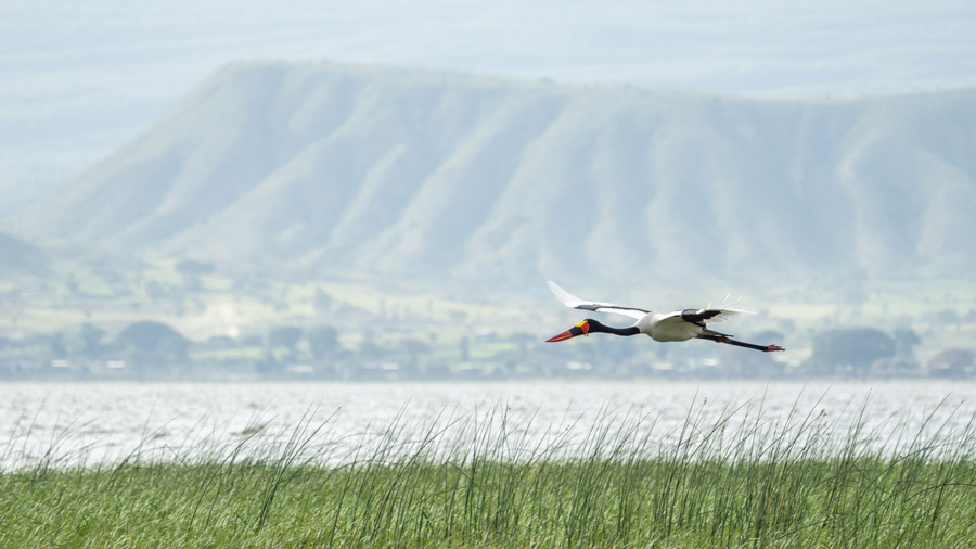 Surrounding the lakes is arid acacia scrub and, driving out of the park, we may see a group of Grant’s gazelles, or catch sight of a spotted hyena or an African golden jackal.