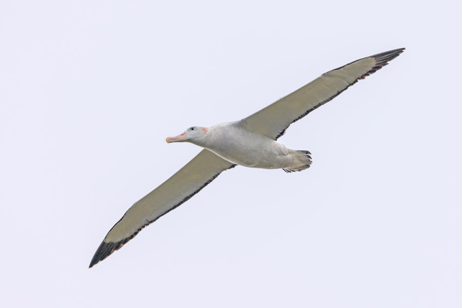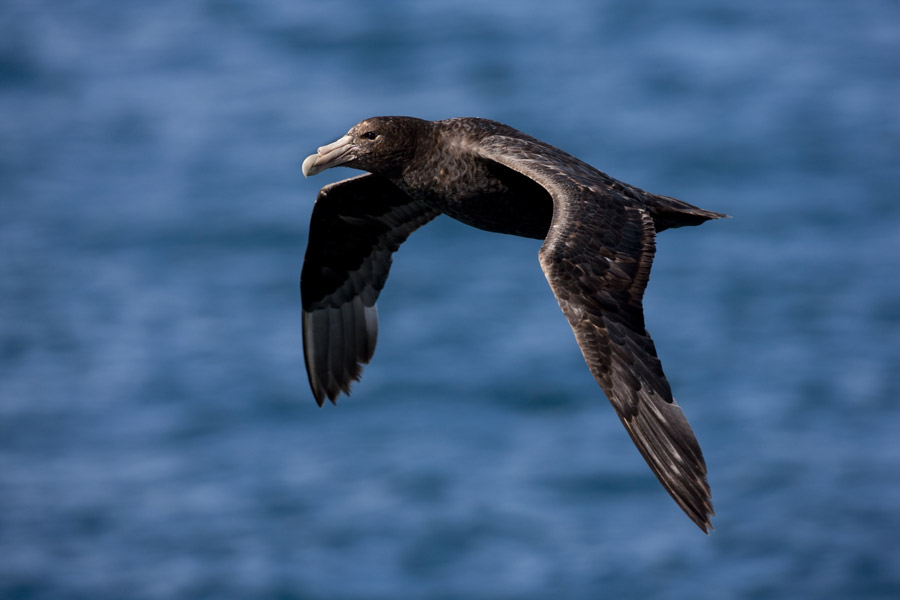As we head into the deeper waters, off the continental shelf, a greater range of cetaceans become possible with both the striking hourglass and Peale's dolphins likely, as well as a chance of fin or sei whale. Pelagic seabirds also increase, with Wilson's storm petrels frequently fluttering just above the surface of the waves and magnificent southern royal albatrosses and various shearwaters gliding effortlessly past. Keen sea-watchers may pick up slender-billed prions, common diving, white-chinned and both northern and southern giant petrels among others.