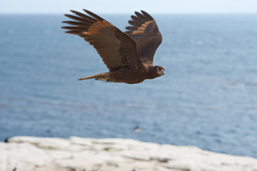 We begin our morning at the fourth largest of the Falkland Islands - Saunders Island - whose white sandy stretches are busy with Magellanic, rockhopper and sub-Antarctic gentoo penguins. Curious striated caracaras, known locally as 'Johnny rooks' will almost certainly be in attendance alongside marauding Falkland skuas and southern giant petrels.