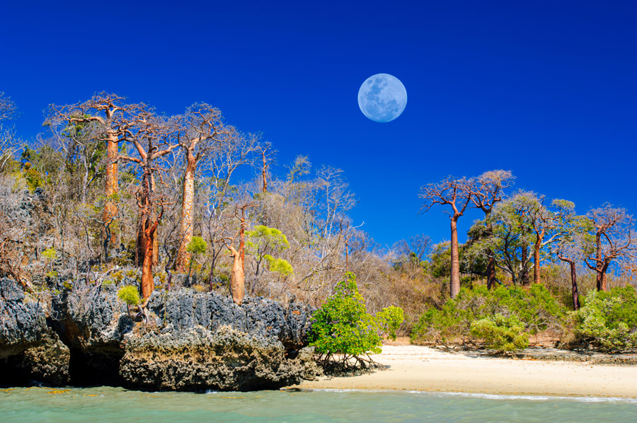 Located on a peninsula on the remote north-west coast, this private reserve is an oasis for wildlife and visitors. Many species of lemurs, birds and reptiles can be seen in its deciduous forest while, along the coast, white sandy beaches are punctuated by dramatic limestone outcrops and mangrove fringed estuaries.