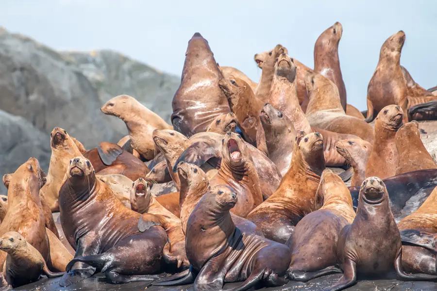 The waters of the north coast are frequented by marine mammals such as seals, sea lions, humpback whales and the infamous orca, or killer whale. We may also encounter Dall’s porpoises, the fastest cetaceans in the oceans, which often ride our bow wave while we are under way. Giant Steller's sea lions are commonly seen hauled out along the rocky shores.