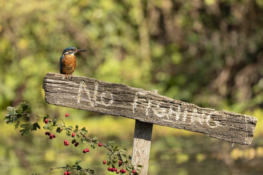 The kingfisher hides are located in front of a large pond, with a number of perches around the edge for the birds to rest on. The aim will be to capture portrait shots of the kingfishers on these perches, and the branches around the pond, and there is also the potential of some images of the birds emerging with fish. It’s a great opportunity to get your focus and settings right and come away with some lovely action shots.