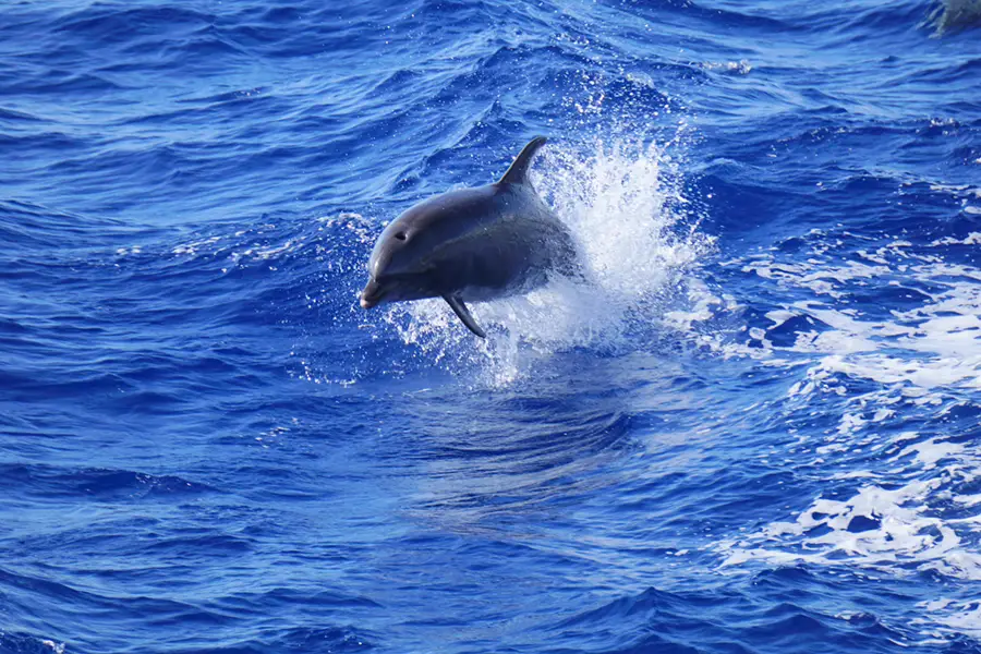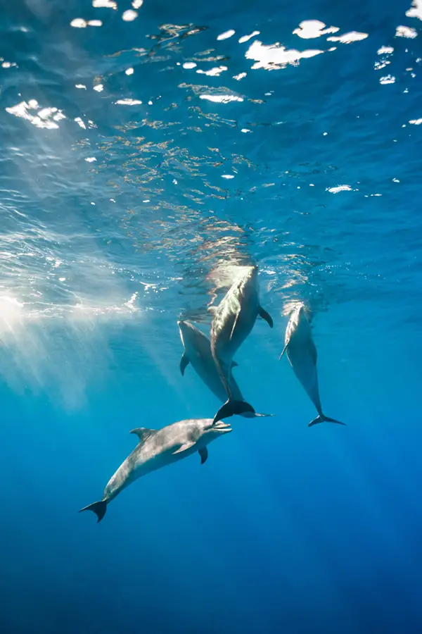 In addition to humpback whales, 23 other cetacean species have been observed in Hawaiian waters, including false killer whale, spinner dolphin, and spotted dolphin. Beyond cetaceans, you can also expect to see giant Pacific mantra rays, green sea turtles, vibrant tropical fish, and an array of wonderful birdlife, with possible sightings including the scarlet honeycreeper and red crested cardinal.