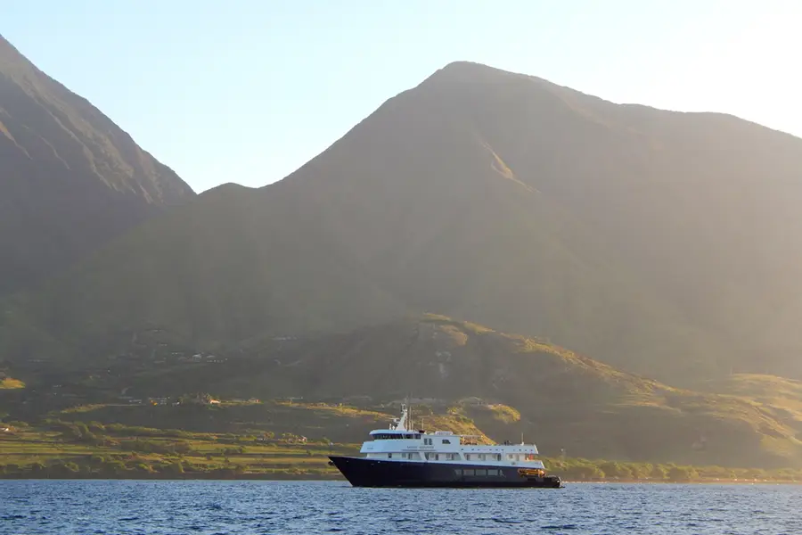 The Safari Explorer’s small size allows for a flexible, intimate adventure, with daily excursions both on the water and ashore. Explore by skiff (small inflatable boat), snorkel among vibrant coral reefs, kayak along stunning coastlines, and hike volcanic trails. You even enjoy a special evening excursion—a magical night snorkel with graceful manta rays. After a day of adventure, retreat to the comfort of your vessel, featuring well-appointed cabins, gourmet dining, and ample deck space for relaxation and wildlife observation.