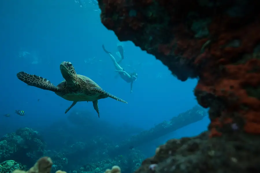 Today, snorkel in vibrant coral gardens teeming with marine life. Here you have excellent opportunities to watch North Pacific humpback whale, spinner and spotted dolphin, sea turtles, and many other fascinating sea creatures.