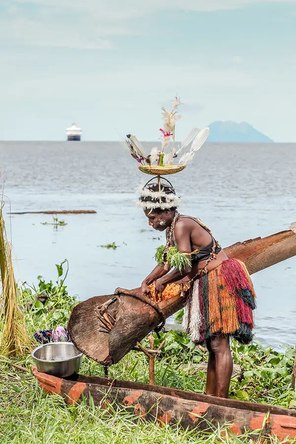 Explore the Sepik River’s tributaries and channels by Zodiac and search for wildlife, all while soaking in your lush surroundings. At Kopar Village, enjoy a heartfelt welcome and witness their captivating dragon dance, a highlight of village life.