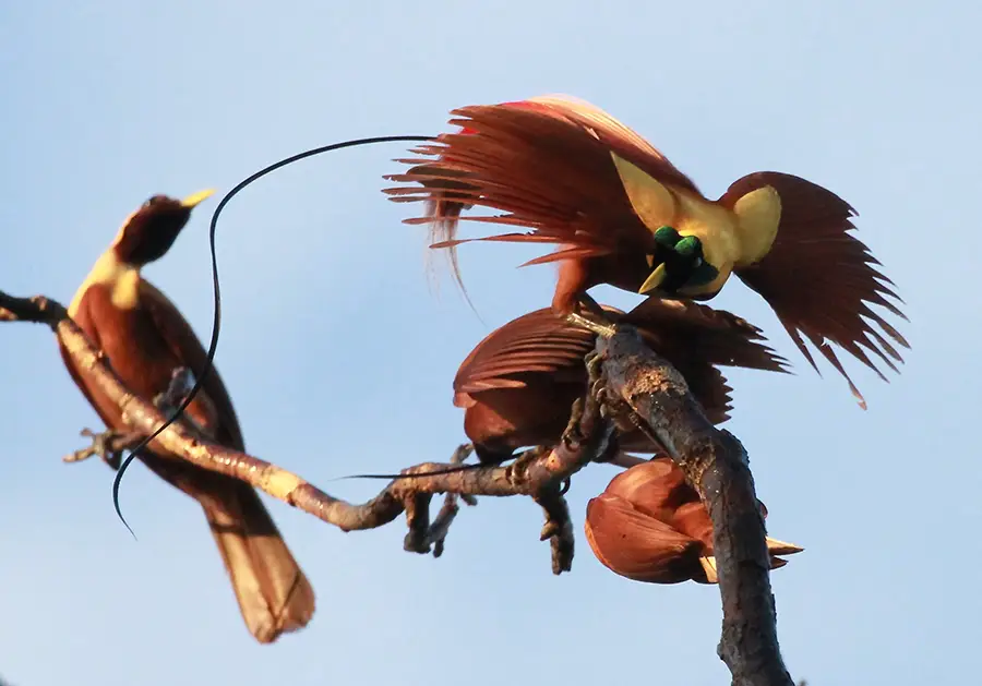 Spend the next three days exploring the delights of Raja Ampat, including a visit to Misool Island and opportunities to witness the Wilson’s bird of paradise and red bird of paradise. With luck, you can observe their captivating mating displays around lekking trees.