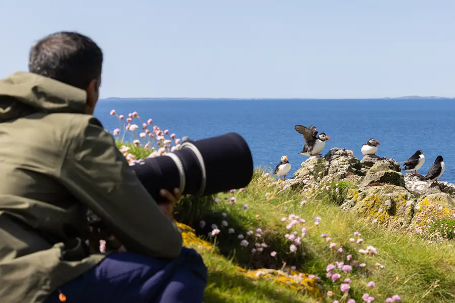 These islands support an incredible number of photogenic species, including Atlantic puffin, razorbill, common guillemot, fulmars and shags. We have countless opportunities for capturing intimate portraits, birds in flight and environmental imagery too.