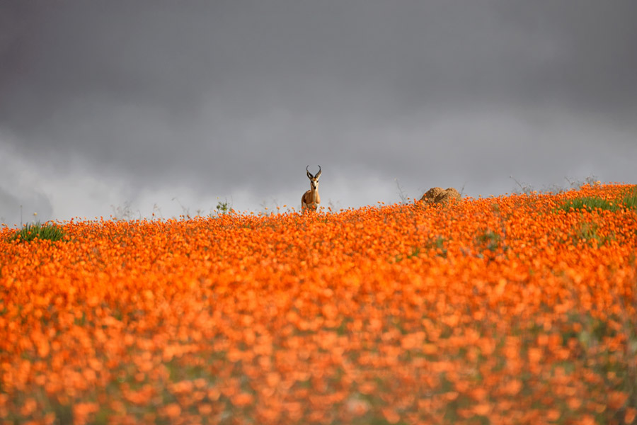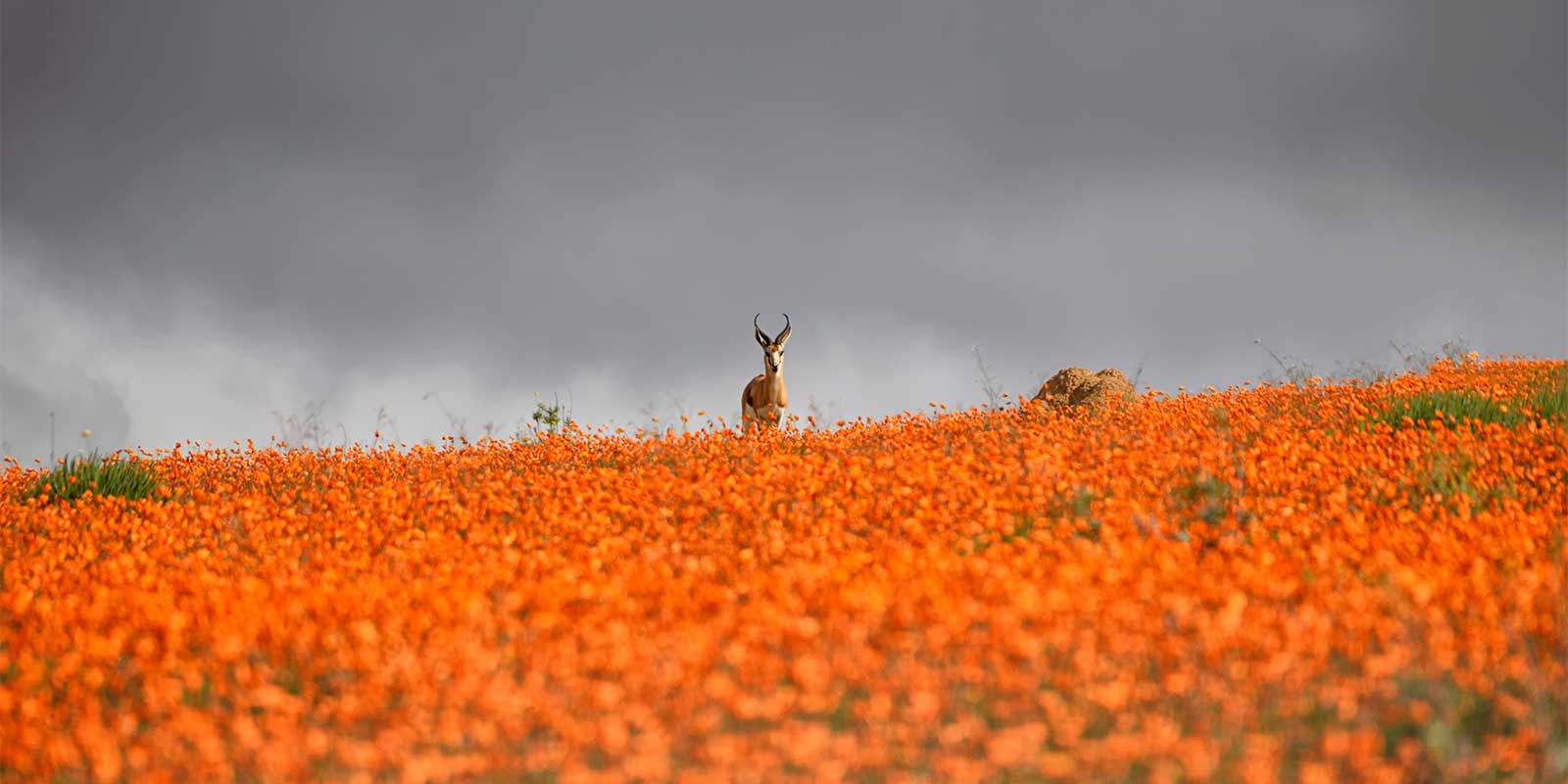 In between flower stops, we keep our eyes open for the region’s birds including cinnamon-breasted warbler, Cape long-billed lark, Karoo lark and Cape bulbul. Mammals we may see among the dazzling spring flowers of Namaqua National Park include bat-eared fox, klipspringer, gemsbok, red hartebeest and steenbok.