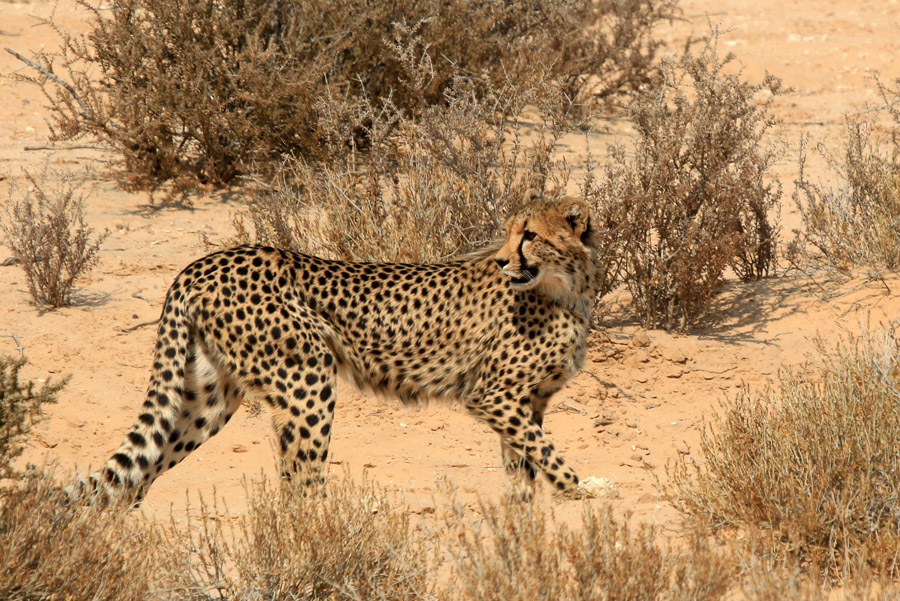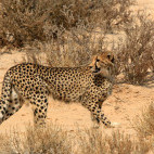 On longer drives, we venture further north to explore the Nossob River. This area has a reputation for excellent lion, leopard and cheetah sightings. We also aim to spend a full day to explore the Auob River, stopping at various waterholes en route in search of any species we may have not yet seen on previous drives.