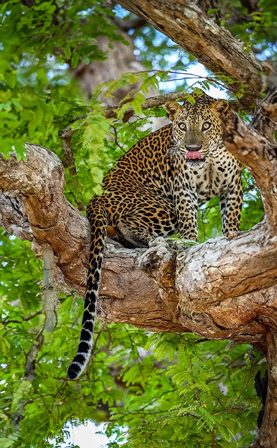 Our drive will take around 3 hours to reach the park entrance, where we then switch to jeeps and begin exploring with a packed lunch, giving us flexibility. This is a much quieter section of Yala National Park, offering a rewarding wildlife photography experience. Block five is another reliable area to encounter the elusive sloth bear, which will be one of our key targets. There will also be plenty of other wildlife highlights, from spotted deer and grey langurs to colourful birdlife. After our safari we transfer to our lodge in the village of Kataragama, near Tissamaharama.