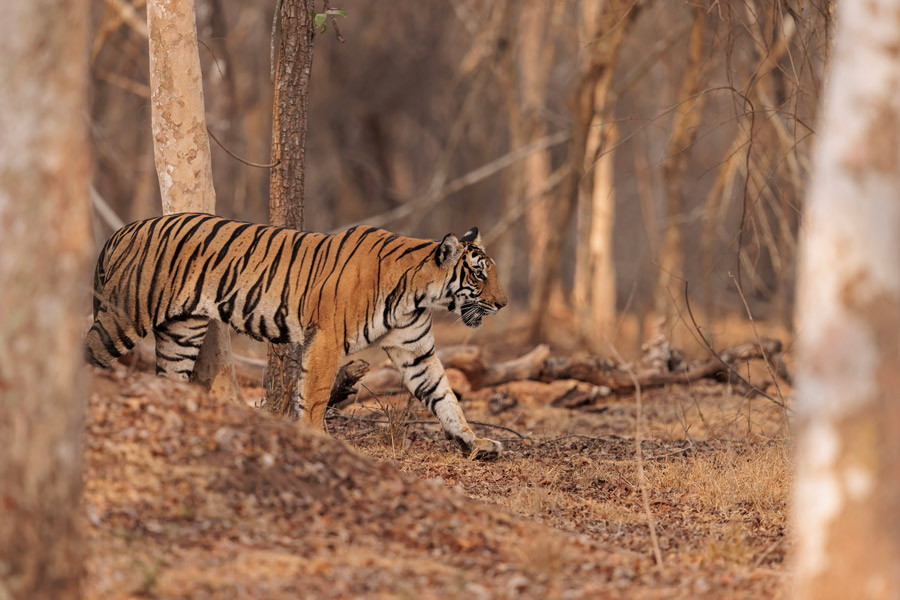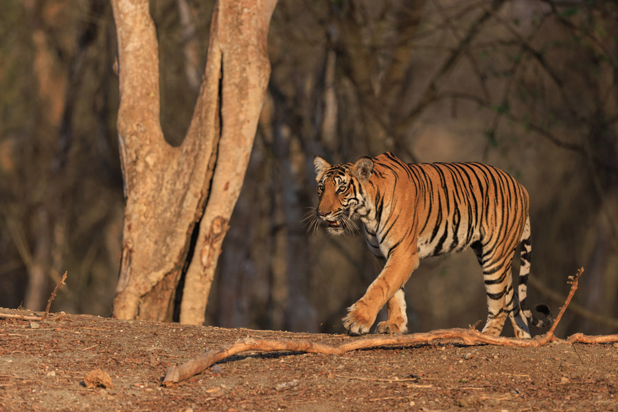 Traditionally regarded as nocturnal, in protected areas away from human activity, tigers and leopards can be observed hunting during the day, and are often at their most active in the late afternoon and early morning. It is at this time that we are most likely to experience the drama of hearing the forest come alive with alarm calls and - with luck - encounter one of these magnificent animals and being able to spend time photographing in the golden light of early morning and late afternoon.