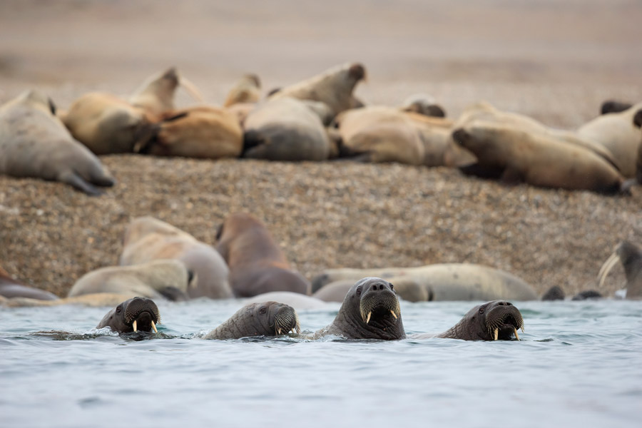 Sail into Hinlopen Strait, home to bearded seals, ringed seals and polar bears. After cruising in Zodiacs among the ice floes of Lomfjordshalvøya, you can view the thousands of Brünnich’s guillemots nesting on the cliffs. On Nordaustlandet, likely wildlife sightings include Arctic reindeers, pink-footed geese and walrus.