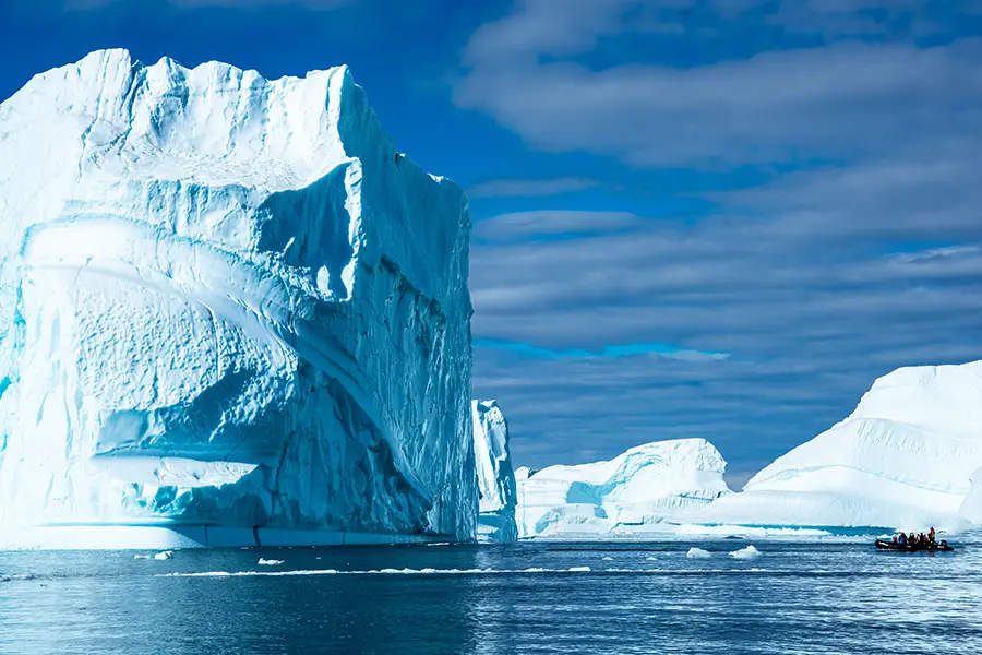 Greenland consists of up to two landings or Zodiac excursions, including cruising along spectacular ice cliffs and following whales feeding near the surface. The tundra landscape is home to musk oxen, Arctic hare and reindeer. You also explore