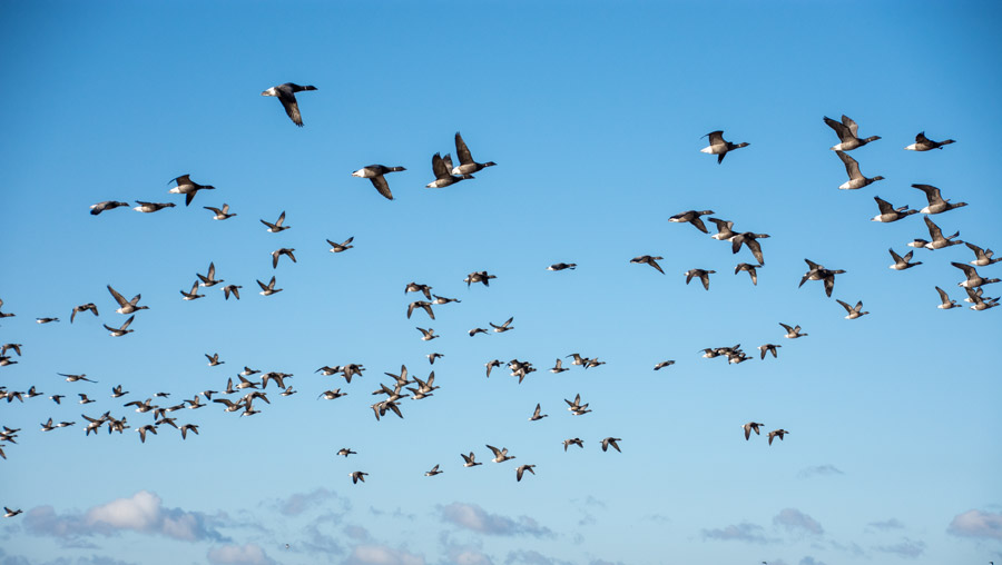 During the autumn months, tens of thousands of ducks, geese and wading birds descend on the coastline of Northumberland, creating a wonderful wildlife spectacle. Light-bellied brent geese, barnacle geese, pink-footed geese, wigeon, grey plovers and bar-tailed godwits are just some of the species that can be encountered during a few days exploring this beautiful region of north-east England.