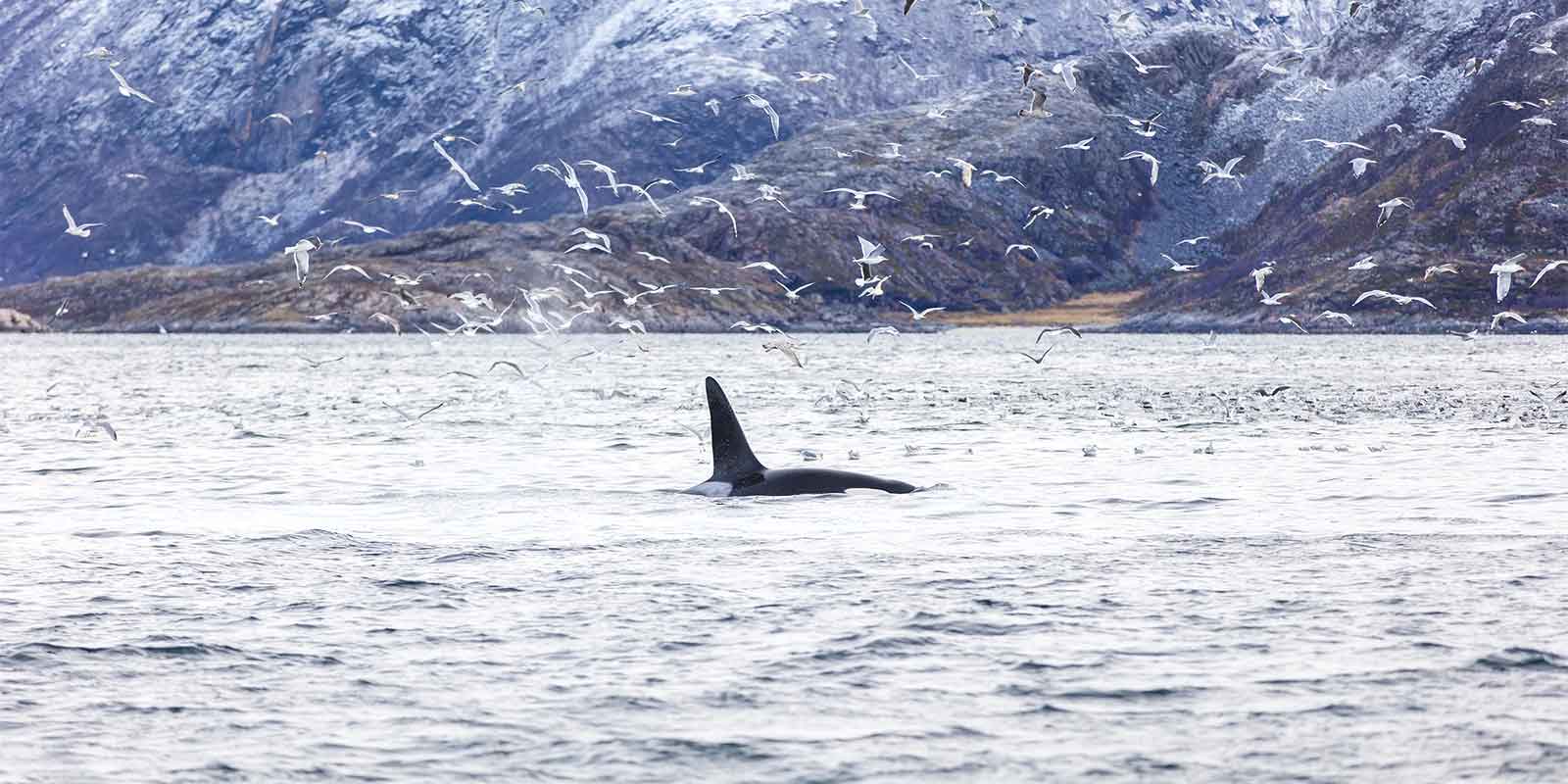 However, the wildlife is not just confined to the limits of the land. Out to sea is an intriguing variety of marine mammals to be observed. Historically from November to March, herring can pass by Andfjorden and the coast of Andøya, which can in turn attract orca and humpback whales. However, it must be said that the movements of herring can fluctuate significantly year on year. These waters are also home to resident sperm whales and these are the most regularly sighted cetacean species here; they are reliably seen during most whale watching excursions. We will endeavour to head out on whale watching boat trips every morning if the weather conditions allow.