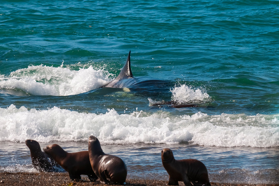 The beaches and surrounding waters of the wild and windswept Valdes Peninsula are a haven for marine wildlife, but it is the magnificent orca, which return here every year to hunt young sea lions that provide the greatest spectacle.