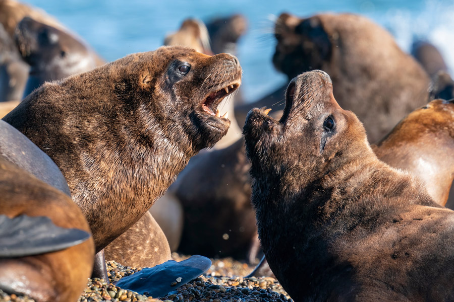 The Punta Norte beaches are home to elephant seals, Magellanic penguins and sea lions. It is the sea lion pups which have become a favourite meal for the resident orca population, and we scan for their fins as they in turn patrol the shallows.