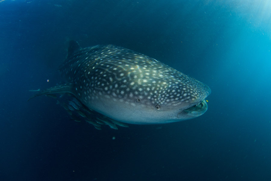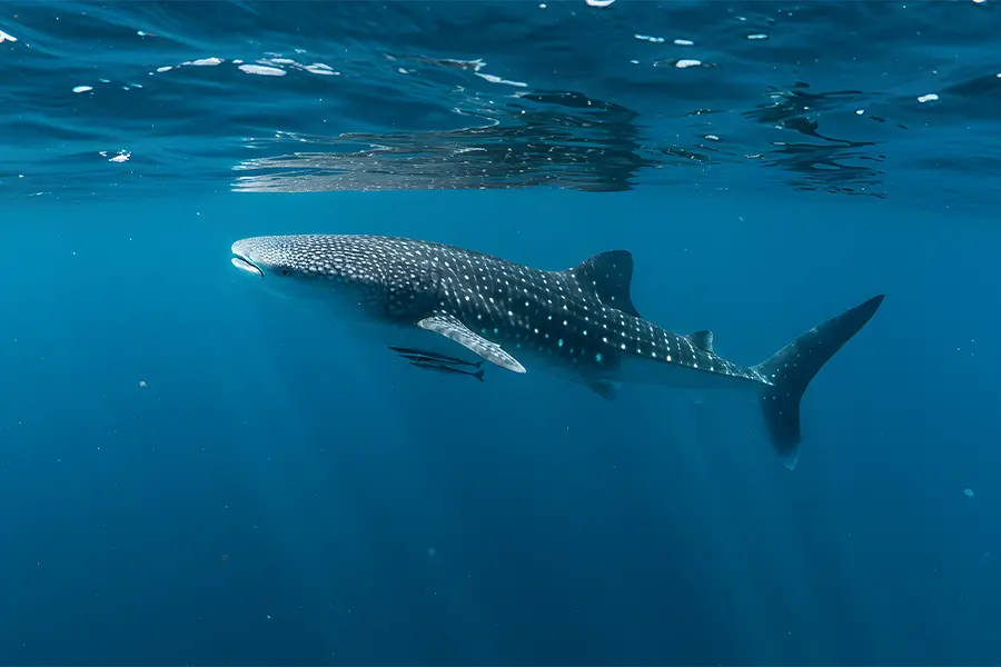 This morning, you set off early to visit local fishing platforms in the bay, where magnificent whale sharks are regular visitors. Although there's no guarantee of sightings, you stand a good chance of being able to snorkel with the sharks at a sensitive distance or watch from the tender boat as the largest fish in the world swims below.