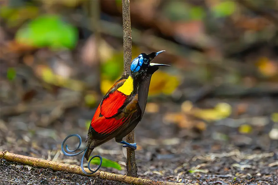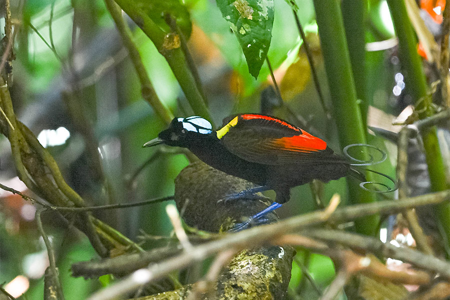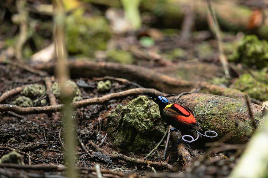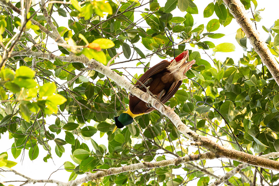 Heading out before dawn, you trek through the forest, where you can hope to witness the spectacular display of the lesser bird-of-paradise. Adorned with long tail wires, ornamental plumes, a dark emerald-green throat and vibrant yellow crown, the males engage in elaborate courtship displays. When seen in full, the display is amongst the most impressive of all the birds-of-paradise.