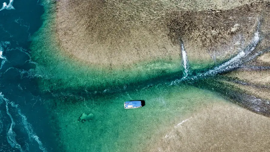 Montgomery Reef - Witness this special reef rise from the ocean in a tidal cascade, where exposed pools attract feeding birds and swirling waters draw turtles, dolphins and dugongs in a dramatic wildlife spectacle.