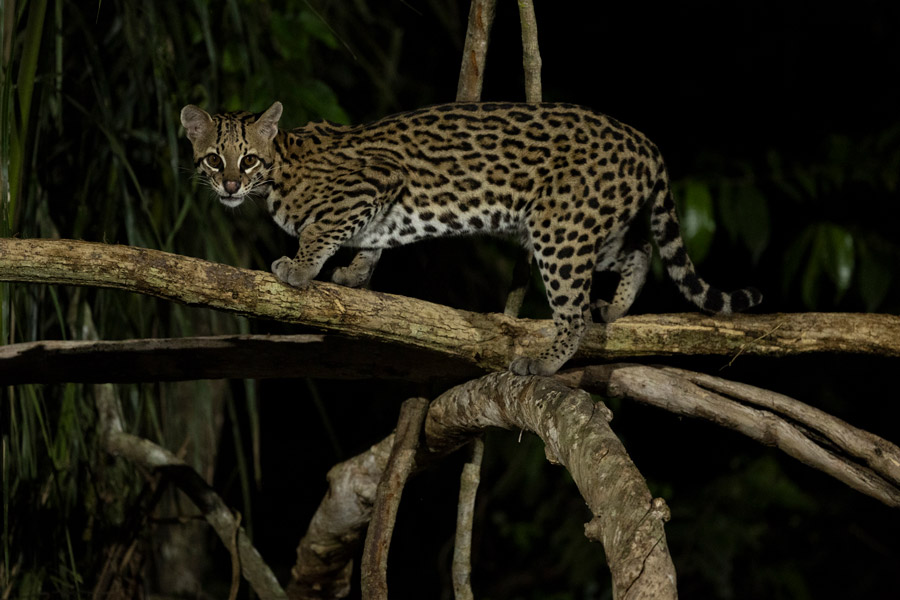 We arrive at our lodge in the late afternoon with some time to settle in before an afternoon boat trip along the Pixiam River. This is an excellent opportunity to enjoy close-up photography with a great diversity of birds, caiman and capybara. Iguanas, the rare agami heron and beautiful sunbittern are regularly seen along this waterway. Later, we reconvene for an evening visit to the lodge’s ocelot hide. This unique hide overlooks a forest clearing where we have an excellent opportunity to watch and photograph this sleek and beautifully spotted cat.
