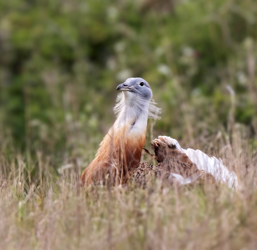 As the ultimate sighting, we hope to find a male still performing his extravagant lekking behaviour. With puffed up chest, head buried in a white feathery mane and flight feathers twisted forward, these enormous birds transform into something unrecognisable during the spring lek. In addition to the bustards, we seek other specialities of the open grasslands including the dinosaur looking stone curlew and now rare corn bunting as well as enjoying the flowers, butterflies and history of this precious site.