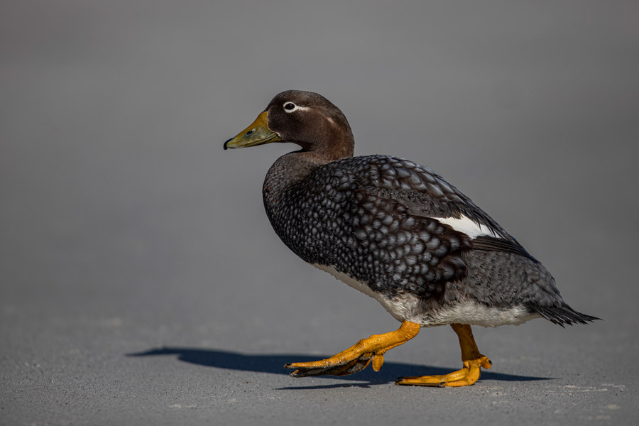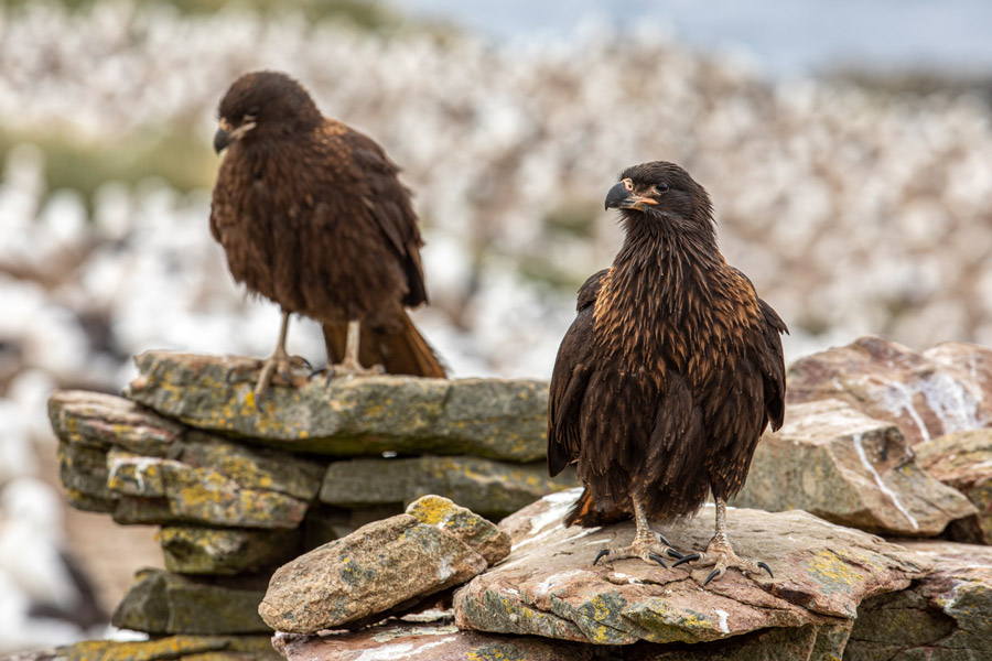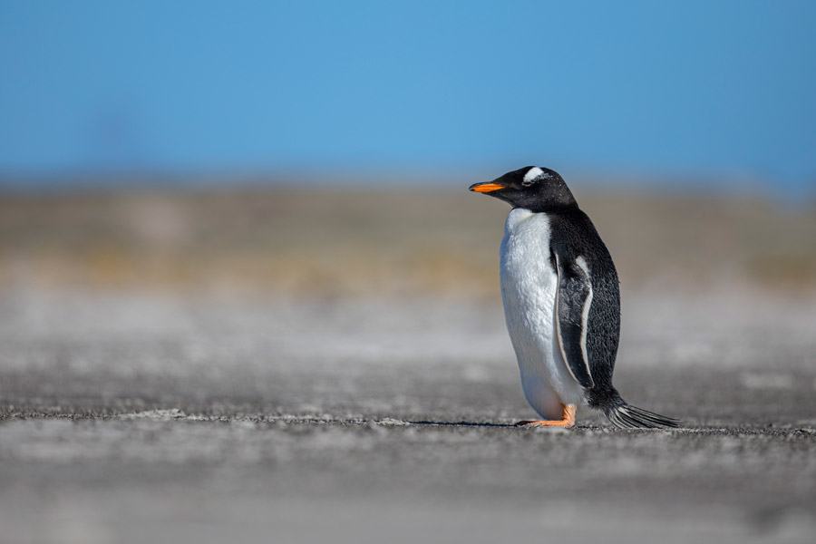 In the Falkland Islands, land birds are one of our wildlife highlights, with 63 species breeding on the islands, including 16 endemic species. Watch rockhopper and gentoo penguins on land, or spot black-browed albatross and petrels high above while cruising on a Zodiac excursion.
