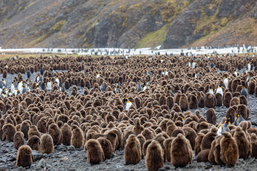 Chartered in 1912-13 by Robert Cushman Murphy, and so named because he observed prions on the island, Prion Island is now a designated specially protected area, due to its rat-free status and breeding wandering albatrosses. In the afternoon, you head to Salisbury Plain for more king penguins, elephant seals and Antarctic fur seals, plus an impressive mountain backdrop.