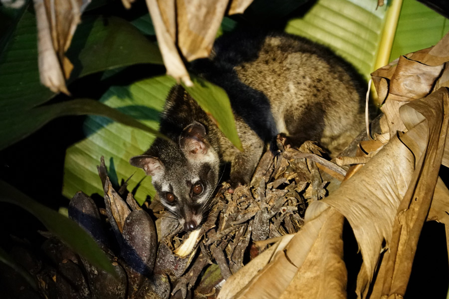 Later, there's again time to rest and enjoy the tranquil nature of our accommodation, before we set off in search of nocturnal mammals once darkness falls. We could perhaps start with a search for slender loris, cats, civets and even the tiny chevrotain deer within the grounds of the lodge, but also venture out on night drives within the local area.