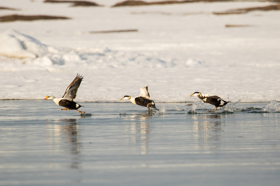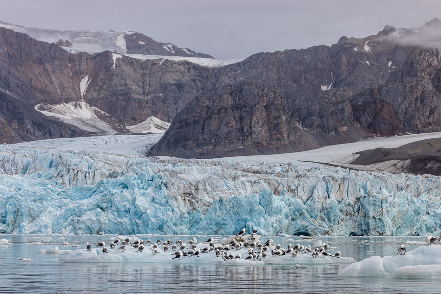 Svalbard offers countless spectacular fjords, and during our journey, we hope to explore several of them including Liefdefjorden, meaning 'The fjord of love', home to the magnificent Monaco Glacier. Many common eiders and pink-footed geese nest in the area, and if lucky, we could see the rare king eider. In Krossfjorden we hope to witness the impressive face of the 14th July Glacier, which is a mighty 16 kilometres long and reaches more than 30 metres above sea level. If weather permits, we will be greeted with the raucous reception of kittiwakes and Brünnich’s guillemots, which nest on nearby cliffs. Raudfjorden is another area we hope to explore, dominated by immense natural beauty. It is also a favourite spot for seals, and the bird cliffs here are bursting with activity. In South-west Spitsbergen, we may visit the grand fjords of Hornsund, offering a breathtaking landscape filled with dramatic glaciers and towering mountain peaks.