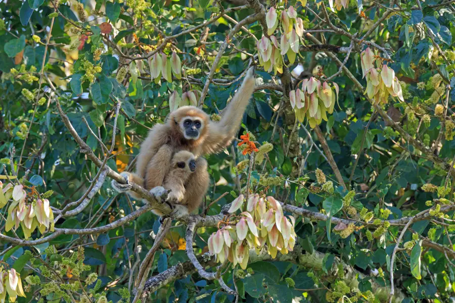 The park’s many waterholes and network of forest tracks are also regularly used by leopards and their smaller relatives, mainland leopard cats and marbled cats. During this season, we hope with luck to encounter one of these cats coming to drink or on patrol of their territory along the road. There are many other highlights, and these range from watching tiny lesser mouse deer and Bengal slow loris close to our lodge, to admiring the acrobatics of the white-handed gibbons deeper in the forest.