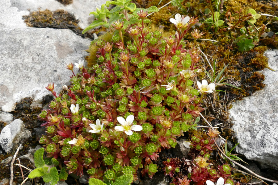 The Burren is the area of limestone karst which extends for roughly 300 square kilometres across County Clare. The region is internationally renowned for its landscape and flora, and a summer visit reveals the full extent of the diversity of flowering plants that live together within a single ecosystem. Arctic and Alpine plants live side-by-side with Mediterranean plants, calcicole (lime-loving) and calcifuge (acid-loving) plants grow alongside one another, and woodland plants grow out in the open without any tree cover to provide shade. Some species that are rare elsewhere are abundant here, and – even more surprisingly – all survive in a land that appears to be composed entirely of rock.
