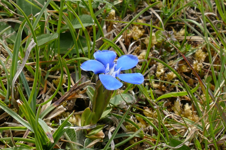 In fact, grikes (crevices) in the limestone provide both shelter and moisture, and so support a wide range of plants, including dwarf shrubs. Where the surface of the limestone pavement is shattered into gravel by the elements, many hardier Arctic or Alpine plants can be found, but where it is covered by a thin layer of soil, patches of grass take over, interspersed with plants such as gentian and orchids. Notable insects include butterflies such as the pearl-bordered fritillary, brown hairstreak, marsh fritillary and wood white; moths such as the Burren green, Irish annulet and transparent burnet; plus the hoverfly Doros profuges.