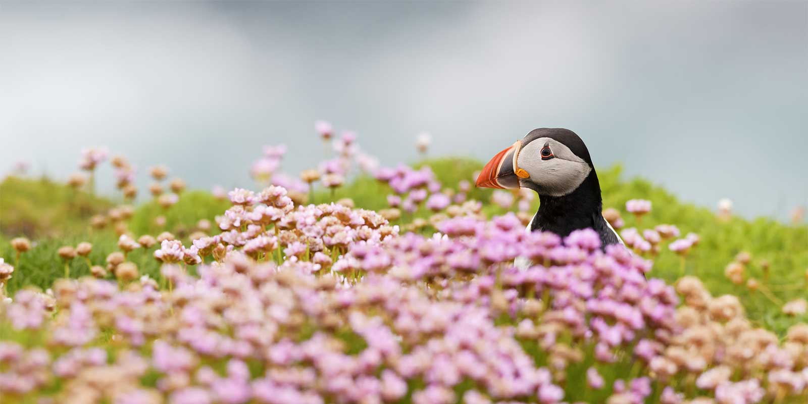 The abundant beauty of this archipelago is manifested in a variety of forms. The dramatic and impressive landscape remains unspoiled and is laden with rare and beautiful wildflowers at this time of year. Cliffs and bays rendered rugged from winter storms, provide shelter to wildlife in the summer months: seals peacefully haul out to rest motionlessly, whilst vast breeding colonies of puffins, gannets and guillemots create a blur of motion and a cacophony of calls. Out at sea, whales and dolphins traverse the surrounding pristine waters.