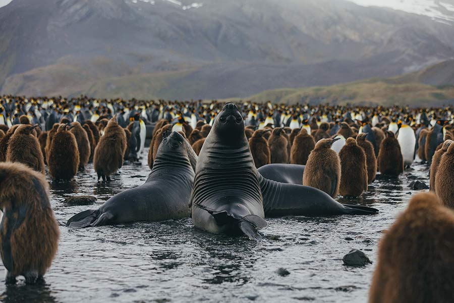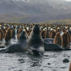 Over the next few days, you explore South Georgia’s spectacular north coast, observing the region's remarkable wildlife either through excursions ashore or onboard Zodiacs. Highlights are likely to include huge king penguins colonies, hundreds of enormous southern elephant seals and feisty fur seals. Birdlife is likely to include marauding brown skuas and southern giant petrels, with several albatross species also possible during the breeding season.