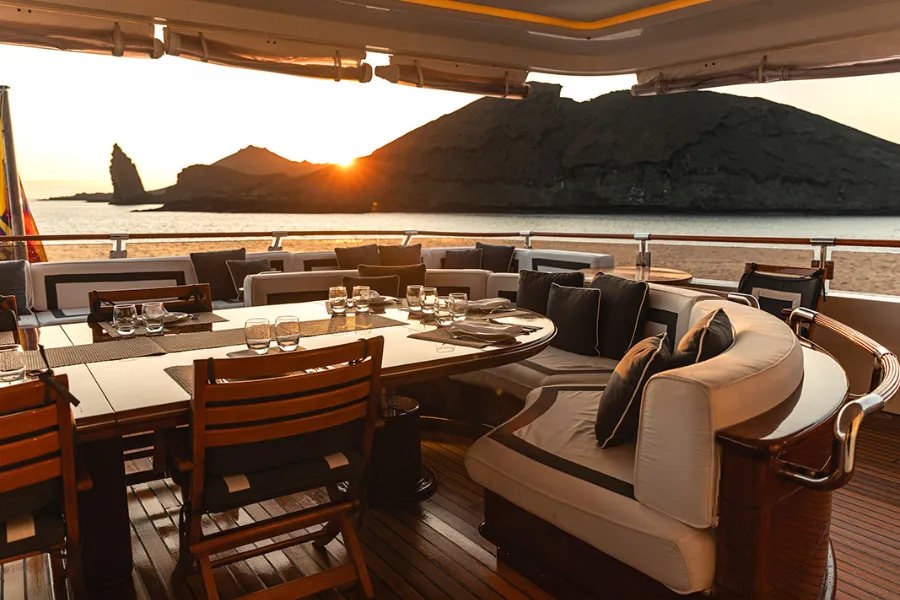 Your last day begins with a luxurious breakfast set against the sunrise. Enjoy the views from Aqua Mare as you circumnavigate Daphne Island before making your way to Baltra Island for disembarkation.