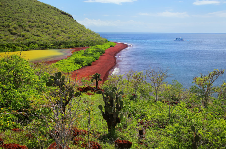 Exploring the islands of the west, you're likely to encounter an abundance of extraordinary wildlife species. See colonies of marine iguanas and flightless cormorants on the rocky shores of Fernandina Island and in the shallow waters of Santa Cruz, watch sea turtles and white-tipped reef sharks. On Rábida Island, witness sea lions against the astonishing backdrop of volcanic red-sand beaches and marvel at the legendary mating dance of blue-footed boobies on North Seymour Island.