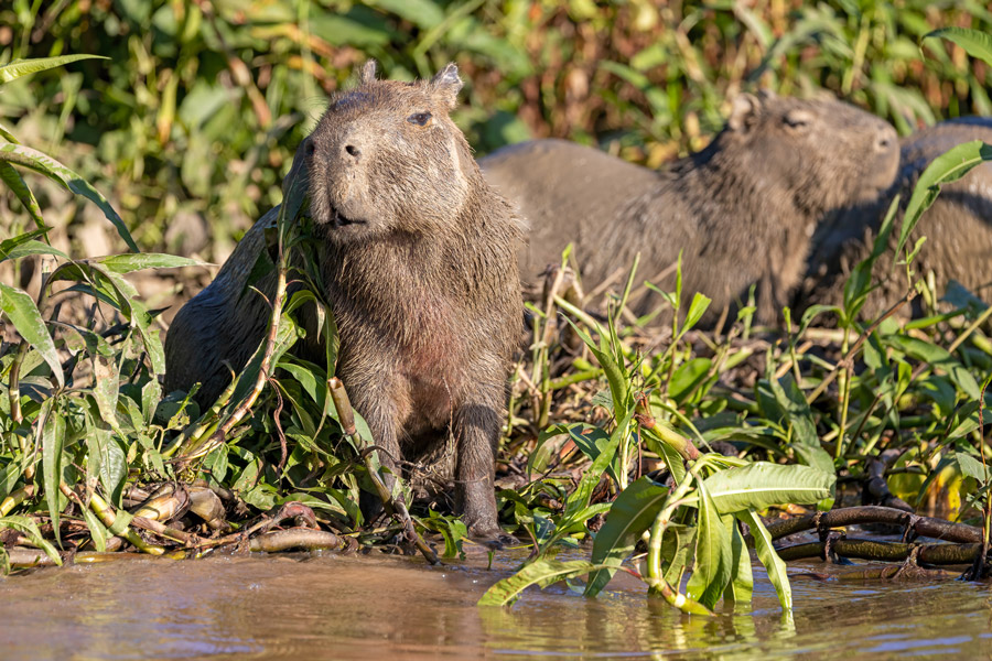The Brazilian Pantanal offers some of the finest bird and mammal-watching in South America. With the onset of the dry season, this enormous wetland gradually begins to dry out, leaving its inhabitants with ever-diminishing pools around which to congregate and feed. Families of capybara, the world’s largest rodent, often end up vying for position alongside huge numbers of yacaré caiman, storks, herons and ibises … and all under the watchful gaze of numerous predators, both avian and mammalian.