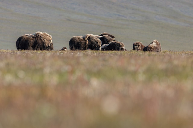 We had a number of tundra landings and on these, one of the main highlights were the musk ox - easy to see from the ship if they are around, but they tend to spend more time in the valleys. We were lucky to find a herd on the open marshland one day and after a long hike across the marsh, we were close enough to make them out with binoculars/long lenses (you don’t want to get to close once you see the size of them!). On another landing, we were about 300 feet away from a polar bear on one side and a musk ox on the other – very exciting.