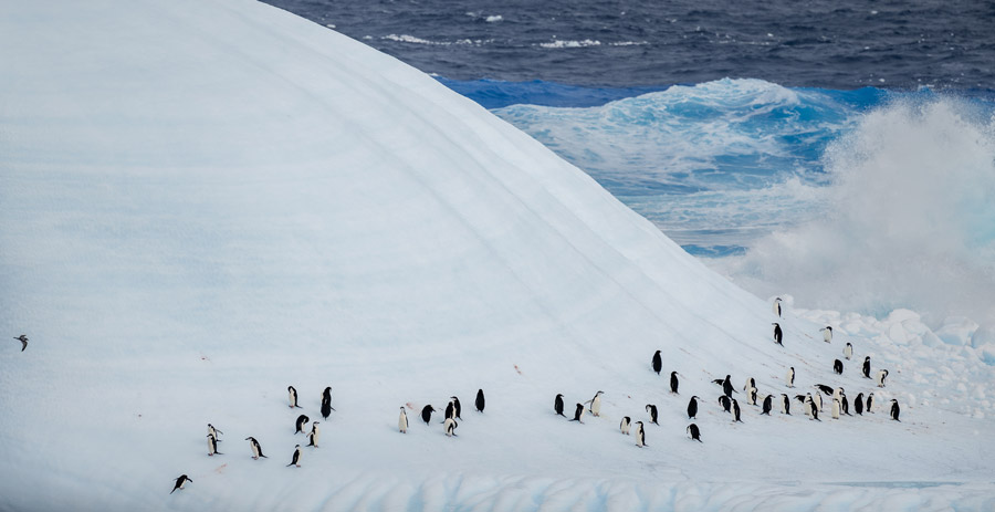 The journey across the passage proved extremely fruitful, with orca, humpback whales, dusky and hourglass dolphins in addition to multiple albatross and petrel species, including the bird with the largest wingspan of any bird, the magnificent wandering albatross. Here, we also enjoyed our first penguin sighting of chinstraps on the most spectacular tabular iceberg. This was definitely a sight that I'll never forget.