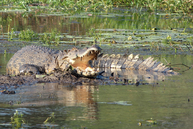 white-bellied sea eagle, though the most iconic is the jabiru stork, which gives its name to Kakadu’s main settlement. The most infamous inhabitant of all, though, is the crocodile. Both freshwater and saltwater crocodiles inhabit the rivers, but ‘salties’ are almost twice as large! On one boat trip I saw no fewer than 30 sunning themselves on the banks, so who knows how many lurked beneath the surface?