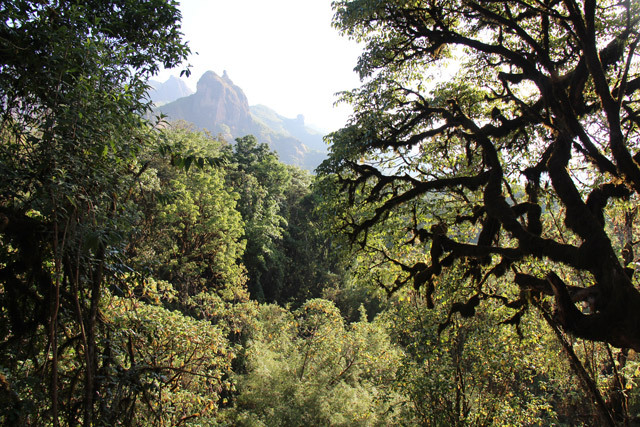 On the descent the rocky outcrops the colour of terracotta and sage-green meadows dotted with giant lobelias gave way to stands of giant heather and huge ancient trees clad in moss, lichen and epiphytes. Among the many birds were augur buzzard, wattled crane and Abyssinian slaty flycatcher. After dinner at the lodge, I headed to my room and was greeted on the terrace by a Bale Mountains two-horned chameleon. That night I drifted off to sleep to the sound of red-chested cuckoo and distant hyena…