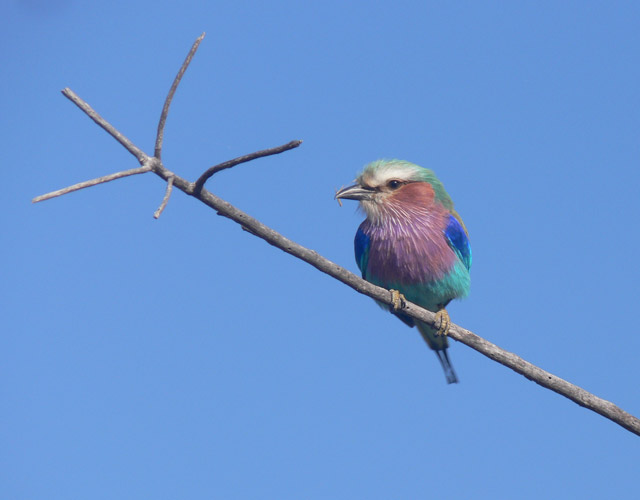 Botswana is a birdwatcher's paradise. Every day we spotted a different species, from the tiniest pied kingfisher darting out of its burrow in the riverbank to the strutting saddlebill stork; we watched jacanas feeding on butterflies, fish eagles stealing the catch from Goliath herons, vultures circling ominously overhead, the Secretary bird with its crown of quill-like feathers, and my favourite – the lilac breasted roller in its technicolor dreamcoat.