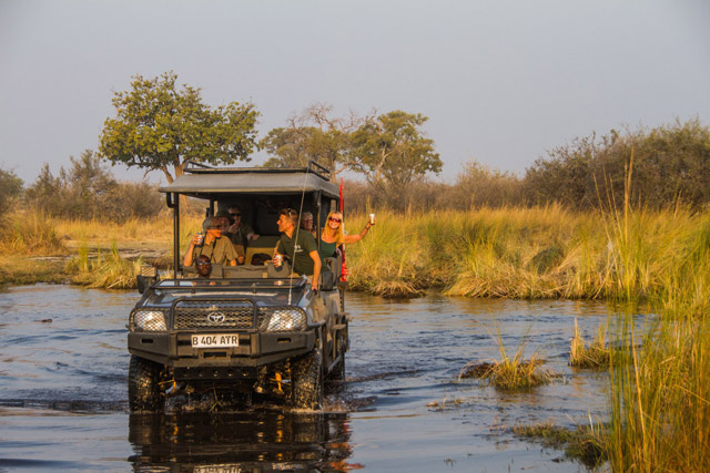 To crown it all, the sunsets. On one evening, elephants dust-bathing by the river toss silver silt into the air over their backs, setting it aflame in the rays of the dying sun. On another, giraffes lope by the sun’s ruby face as it touches the horizon, a scene so utterly African it seems a cliché. In our hands, as the sun sets each day, an ice cold beer, and later around the flames of the campfire, as our brilliant guides review the day and share tomorrow’s plan, the gin, wine and beer flow freely. To see the heart of savannah Africa, and lose your own heart to its wild embrace, there is no better tour than Best of Botswana.